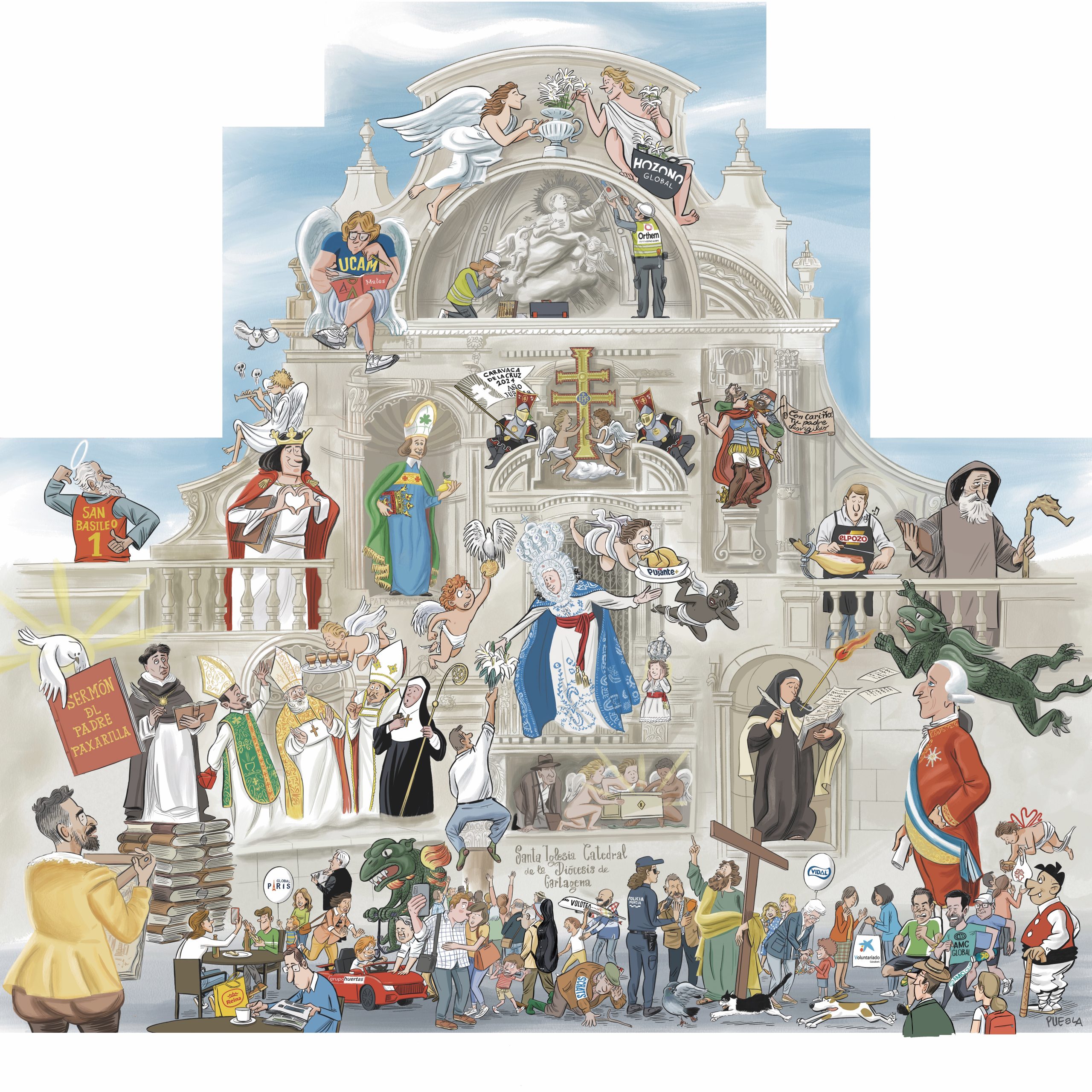 Lona de 1500m2 que cubrió los trabajos de restauración de la fachada principal de la Catedral de Murcia. 2024