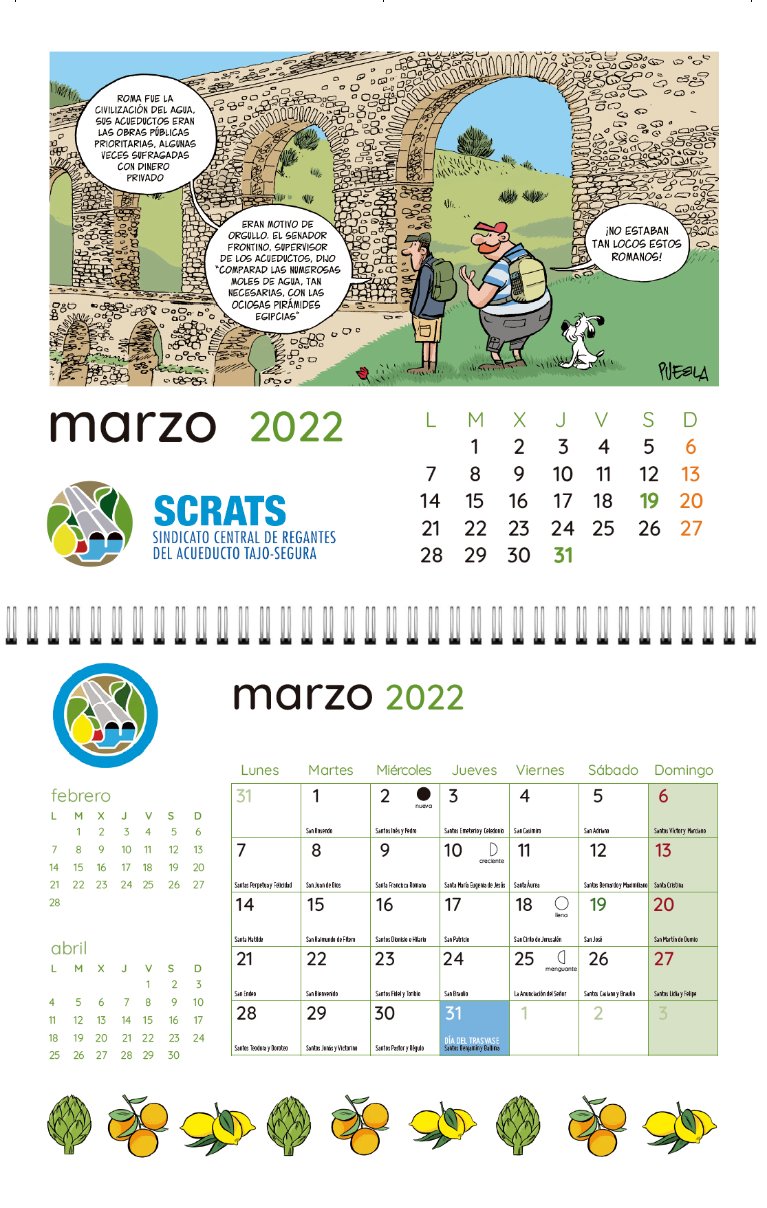 Calendario Sindicato Central de Regantes del Acueducto Tajo Segura (SCRATS). 2022