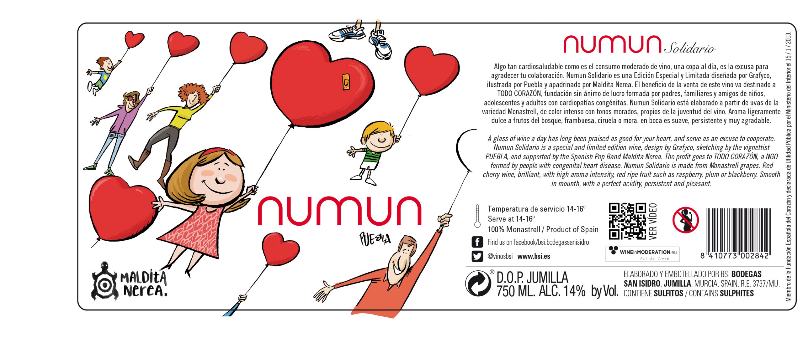 Etiqueta de vino solidaria con la Asociación Todo Corazón de Bodegas San Isidro (Jumilla) 2015
