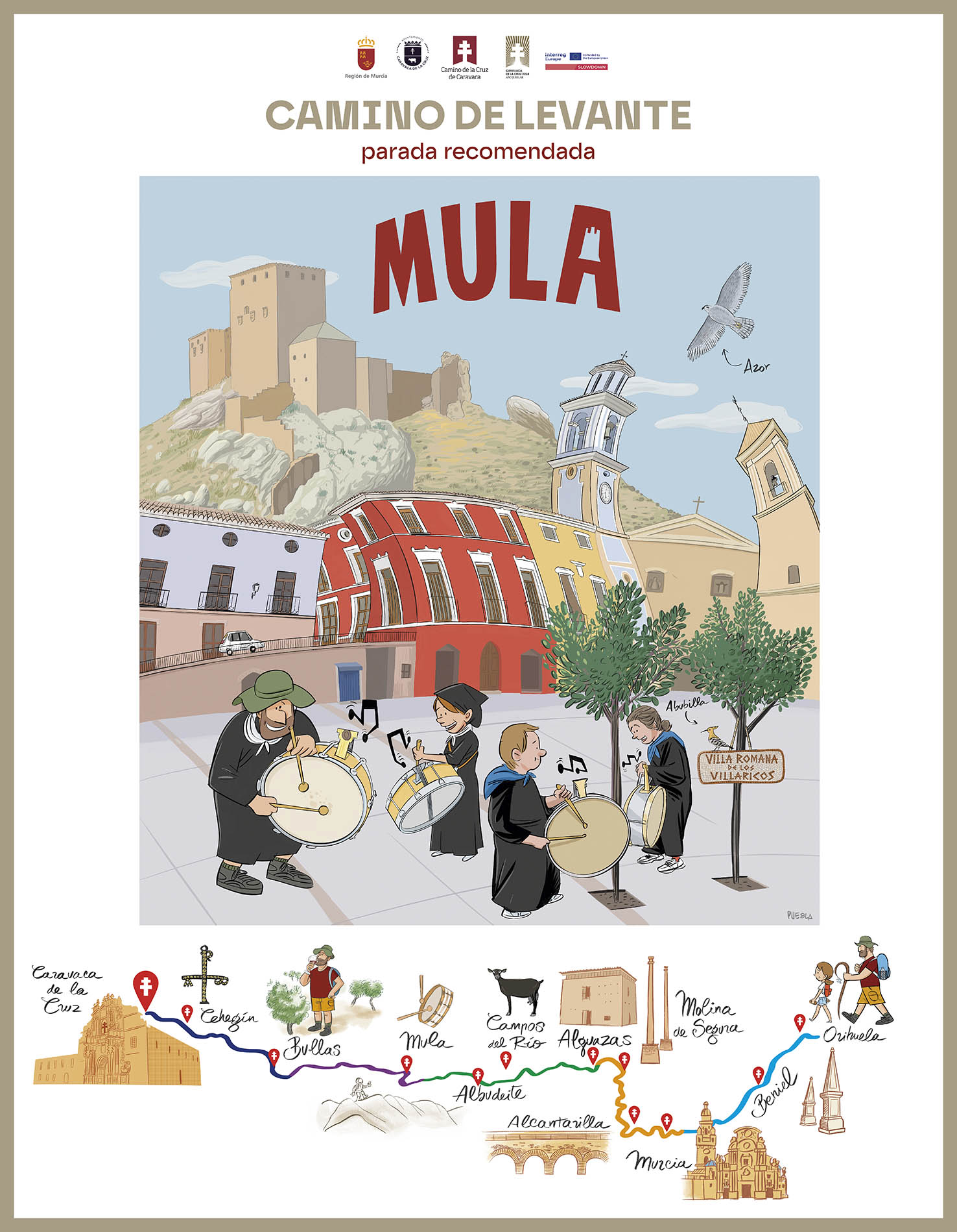 Cartel para el Municipio de Mula anunciando los lugares recomendados para los peregrinos del Camino de Levante